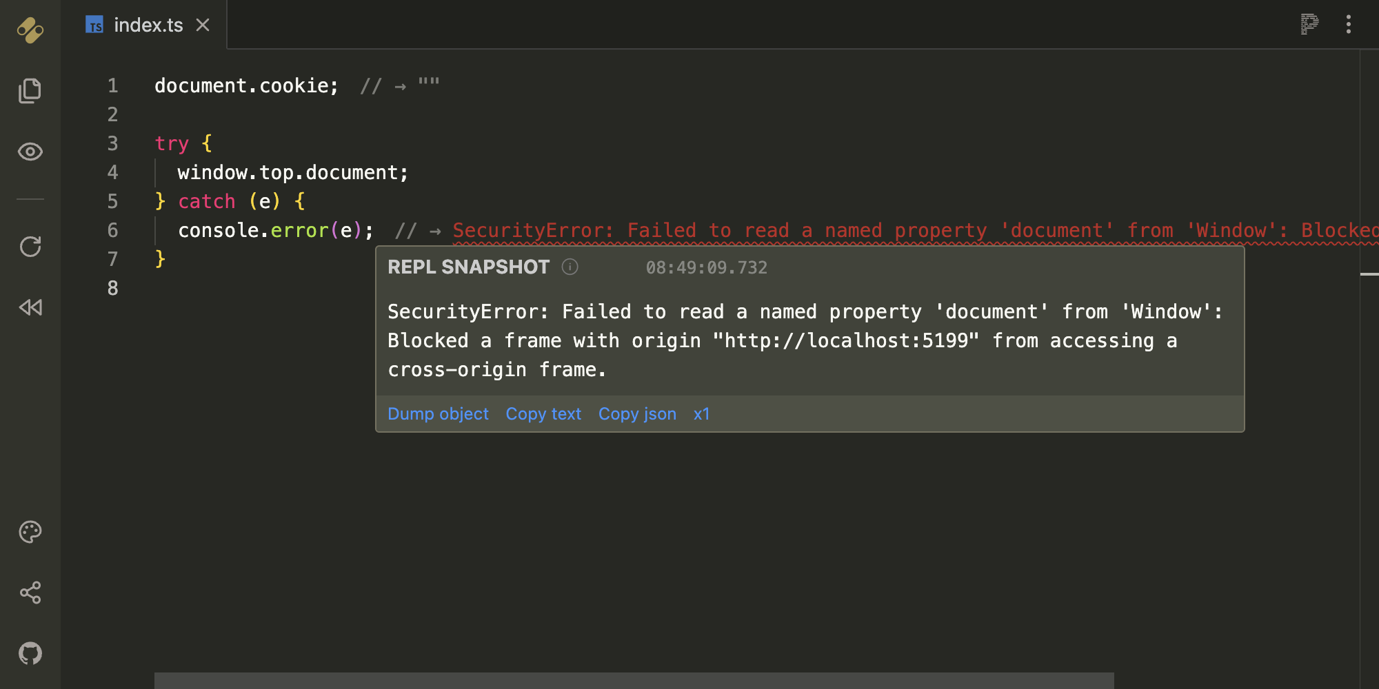 The essence of JSREPL is to offer a playground that allows you to test your frontend code snippets quickly and without distractions, such as the need to set up a (complex) development environment.